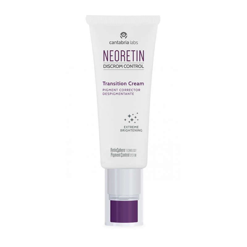 Crema con activos hidratantes y suavizantes que garantizan una alta tolerabilidad, para alternar con tratamientos despigmentantes con alta concentración de retinoides o como mantenimiento. Formulada con la tecnología Pigment Control System que reduce la pigmentación cutánea. Además, la tecnología RetinSphere Technology(R) optimiza el proceso de retinización y renovación epidérmica mejorando la textura y la luminosidad de la piel, mientras que la tecnología EDAFENCE(r) protege frente a la polución, uno de los principales responsables de las manchas, y demás factores causados por el estrés ambiental. Con una textura ligera no comedogénica que se absorbe rápidamente facilitando su aplicación. Testado bajo control dermatológico y oftalmológico. Modo de empleo: Aplicar por el día y/ noche sobre la piel limpia de cara y cuello. NEORETIN DC TRANSITION CREAM se puede alternar con NEORETIN DC ULTRA EMULSION para mejorar la tolerancia a retinoides de pieles sin retinizar o utilizarse como tratamiento de mantenimiento tras el tratamiento con NEORETIN DC ULTRAE MULSIÓN u otros tratamientos despigmentantes. Utilizar siempre fotoprotección oral y tópica durante el día. Composición: Retinol RetinSphere Technology®, New-generation Retinoid Ácido hialurónico Pigment Control System EDAFENCE® Powerful Anti-pollution Defence Activos hidratantes y suavizantes Tipo de piel: Piel grasa, mixta, normal, seca